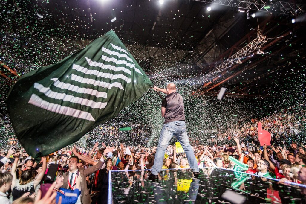 The sheer scale of the event – 10,000 seated guests in the arena, alongside upwards of 50,000 employees watching at home or in their branches – added to the complexity of the challenge. In addition, two remote locations were also linked live into the main arena show.